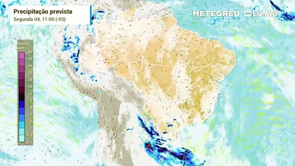 O sistema de baixa pressão atmosférica vai se deslocar, desacoplar e dar origem a uma nova frente fria com um ciclone formado no Atlântico. Na sexta-feira (08), o sistema frontal vai avançar e provocar temporais com chuvas intensas também em Santa Catarina, no Paraná e no sul do Mato Grosso do Sul. Algo que deve evoluir para a região Sudeste no final de semana, mas já com o sistema costeiro.