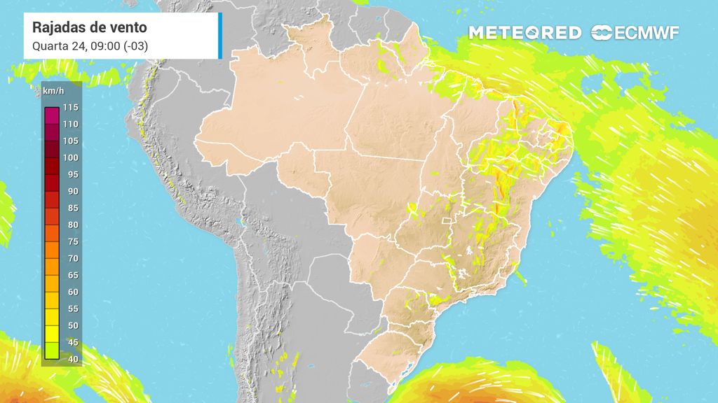Na terça-feira (23), a frente fria avança para os demais estados e uma massa de ar polar dá espaço predomina sobre o estado de São Paulo e derruba as temperaturas, trazendo o frio de inverno de volta. O tempo segue nublado no leste do estado e, a circulação oceânica favorece a chuva fraca ou chuvisco.