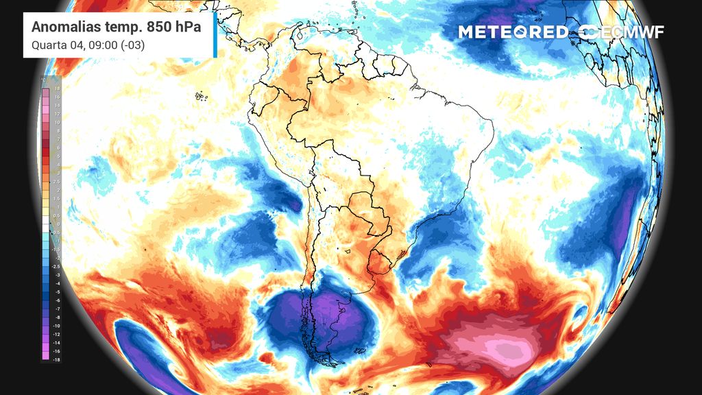 Esse padrão se mantém até terça-feira (3) nas regiões Sul e Sudeste. No entanto, o afastamento da massa de ar frio, faz com que as temperaturas mais do interior dessas regiões passem a aumentar bastante ao longo do dia, gerando um contraste térmico intenso de até 30°C: nas áreas mais elevadas das duas regiões, as mínimas, que acontecem entre o fim da madrugada e o início da manhã, podem atingir valores de 6 a 8°C; as máximas podem chegar a quase 40°C no oeste da Região Sul.