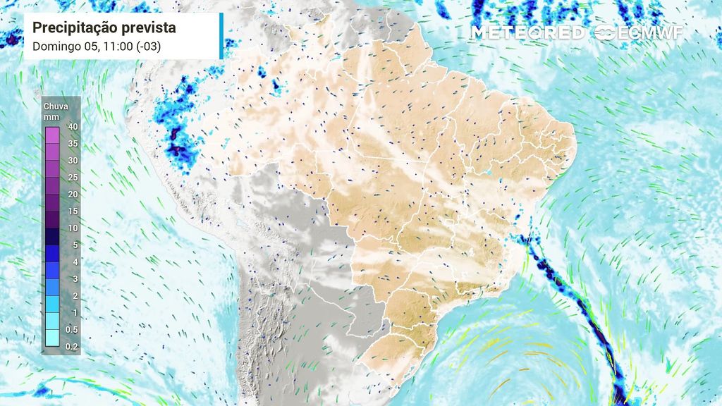No decorrer do dia, o sistema frontal não consegue avançar e se afasta para o oceano. No entanto, o tempo segue instável no sul do Rio Grande do Sul, com maior potencial para tempestades a partir de meados da tarde. No restante da Região Sul e no Sudeste, o tempo firme predomina. No Centro-Oeste, pancadas muito isoladas podem ocorrer no norte e leste do Mato Grosso e no nordeste do Mato Grosso do Sul.