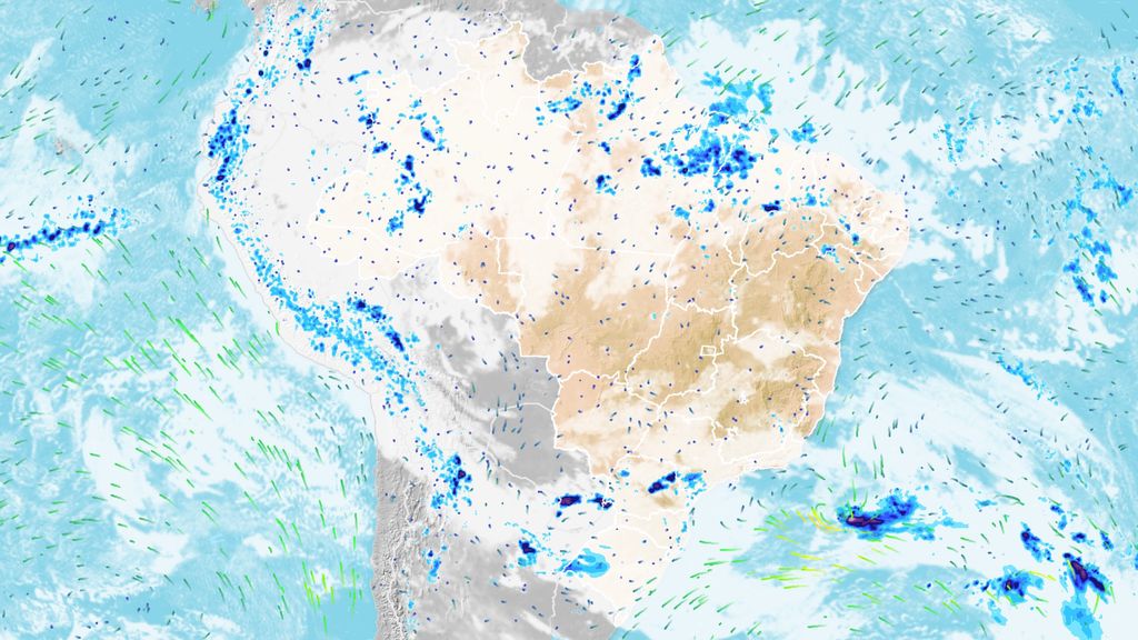No Centro-Oeste, as chuvas também se espalham de maneira mais abrangente. Além do Mato Grosso e do extremo sul do Mato Grosso do Sul, pancadas também se formarão em boa parte de Goiás e do Distrito Federal, quebrando um padrão de tempo mais firme e seco que será registrado durante a semana.