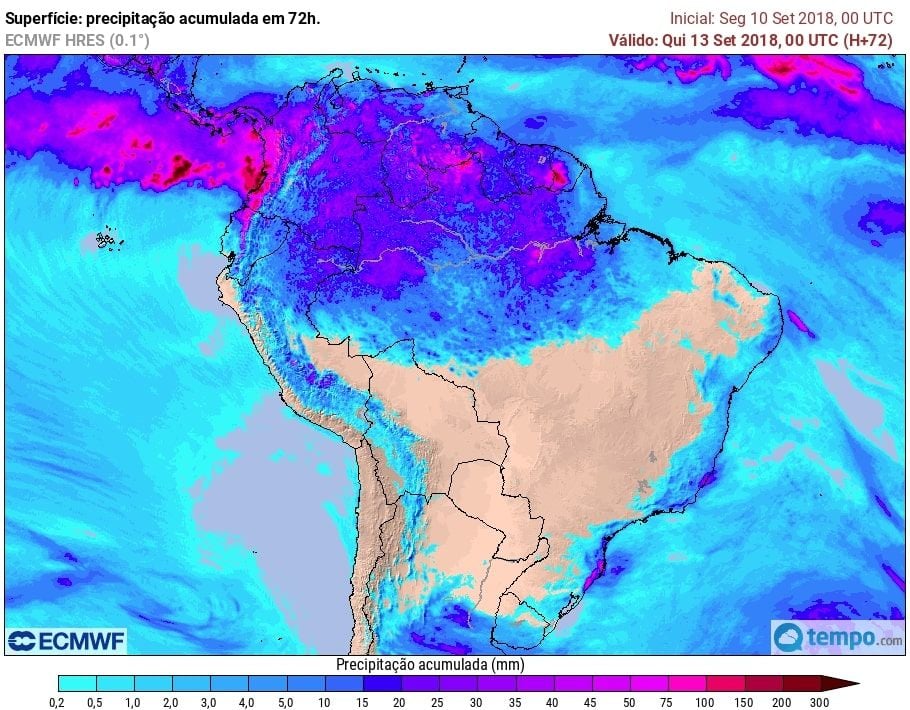 Nos próximos dias o tempo seco predomina, com umidade relativa bastante baixa na porção central do país. Retornos das chuvas previstas mais a partir de quinta-feira (13).