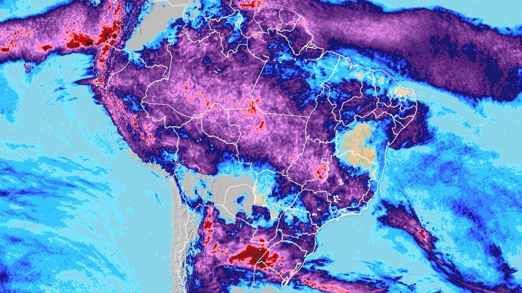 Com o lento avanço de uma nova frente fria pelo Sul do Brasil ao longo da semana, a previsão é de aumento do calor sobre áreas do Sudeste e do Centro-Oeste, algo que será suficiente para desenvolver nuvens carregadas ao encontrar a umidade ainda presente no Brasil Central.