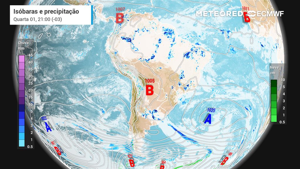 Mesmo assim, a terça-feira (31) começa com tempo parcialmente nublado em grande parte do Brasil. Ainda pela manhã, áreas pontuais do Sul e Sudeste têm previsão de pancadas de chuva, como no litoral de Santa Catarina e na divisa entre Minas Gerais e o sul do Rio de Janeiro.