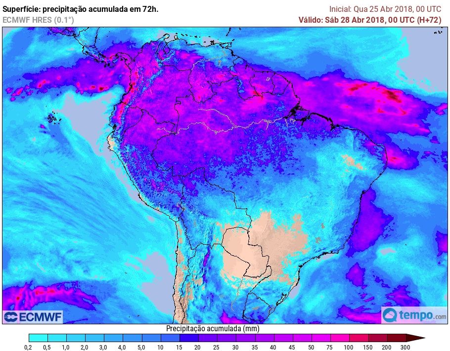 Nos últimos dias de Abril uma massa de ar seco mantém o tempo firme em boa parte do Brasil. Já no Nordeste as chuvas continuam volumosas no litoral da Região.