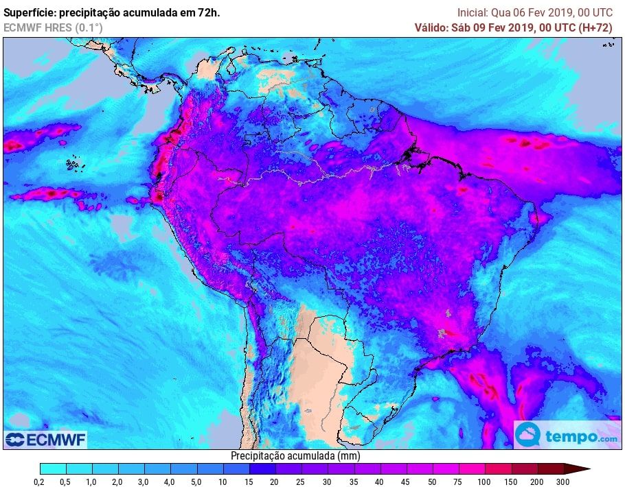 As presenças de um sistema frontal no oceano, na altura dos estados do Rio de Janeiro e do Espírito Santo, juntamente com a atuação de uma área de baixa pressão sobre a porção mais central do país, contribuem para o tempo instável e chuvoso nas regiões Centro-Oeste, Sudeste e boa parte do Norte e Nordeste nos próximos dias. Há risco para temporais e chuvas volumosas. Na região de Brumadinho, em Minas Gerais, as condições do tempo podem atrapalhar os trabalhos de resgate.